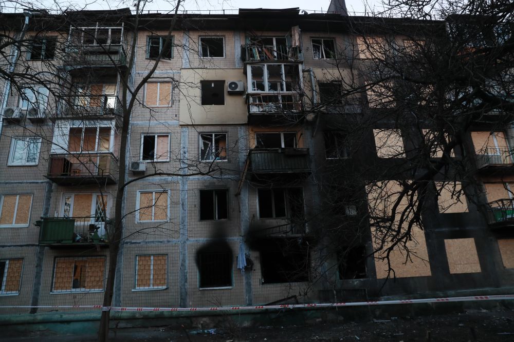 图为11月14日,乌克兰首都基辅第聂伯河区一栋房屋因空袭受损。图片来源:新华社记者 李东旭