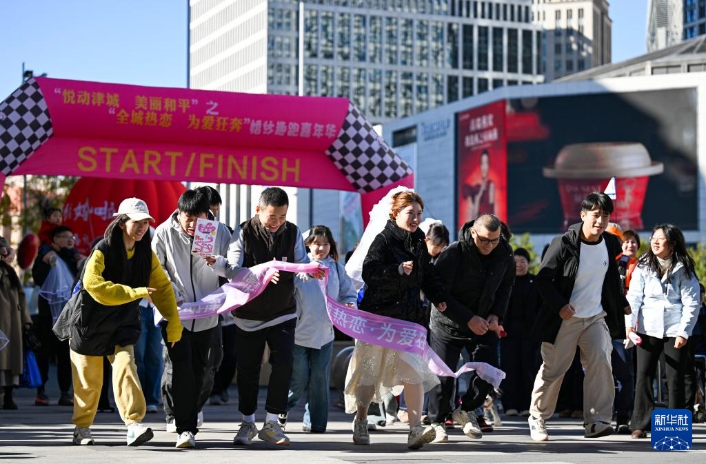 11月2日,参赛新人出发参加婚纱迷比赛。当日,由天津市和平区民政局主办的“津城欢乐,美丽平安”婚纱趣味嘉年华在和平区津街步行街举行,数十对新人参加。新华社记者 赵子硕 摄 11月2日,一对参加活动的情侣用尽全力奔跑。当日,由天津市和平区民政局主办的“津城欢乐,美丽平安”婚纱趣味嘉年华在和平区津街步行街举行,数十对新人参加。新华社记者 赵子硕 分页供图 11月2日,一对参加活动的情侣冲过终点线。当天,举办了由天津和平民政局主办的“津城欢乐,美丽平安”婚纱趣味嘉年华活动在和平区金街步行街举行,数十对情侣参加。新华社记者 赵子硕 分页供图 11月2日,一对参加活动的情侣冲过终点线。当日,由天津市和平区民政局主办的“津城欢乐,美丽平安”婚纱趣味嘉年华在和平区津街步行街举行,数十对新人参加。新华社记者赵子硕专页供图 11月2日,参加活动的情侣们参加婚纱扇子竞速比赛。当天,由天津市和平区民政局主办的“欢乐晋城,美丽和平”婚纱趣味嘉年华,数十对新人参加。新华社记者 赵子硕 摄 11月2日,一对参加活动的情侣用尽全力奔跑。在同一天由天津市和平区民政局主办的“津城欢乐,美丽平安”婚纱趣味嘉年华在和平区津街步行街举行,数十对新人参加。新华社赵子硕网页供图 11月2日,参加活动的情侣在婚纱扇子赛前热身。当日,由天津市和平区民政局主办的“津城欢乐,美丽平安”婚纱趣味嘉年华在和平区津街步行街举行,数十对新人参加。图片提供:新华社记者赵子硕。