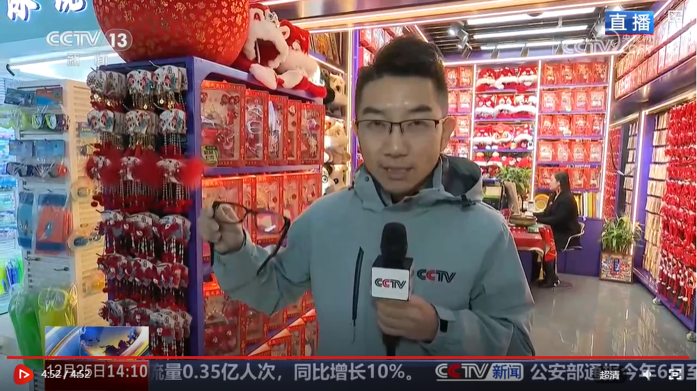 记者在义乌小商品城一家礼品店里发现了这张写着“福”字的年画。为什么我们说“偷”?这是因为很多流行款式早已售空。义乌历来被称为节日用品的“风向标”。在这里走一走,你就会发现2025年流行什么、最畅销什么。